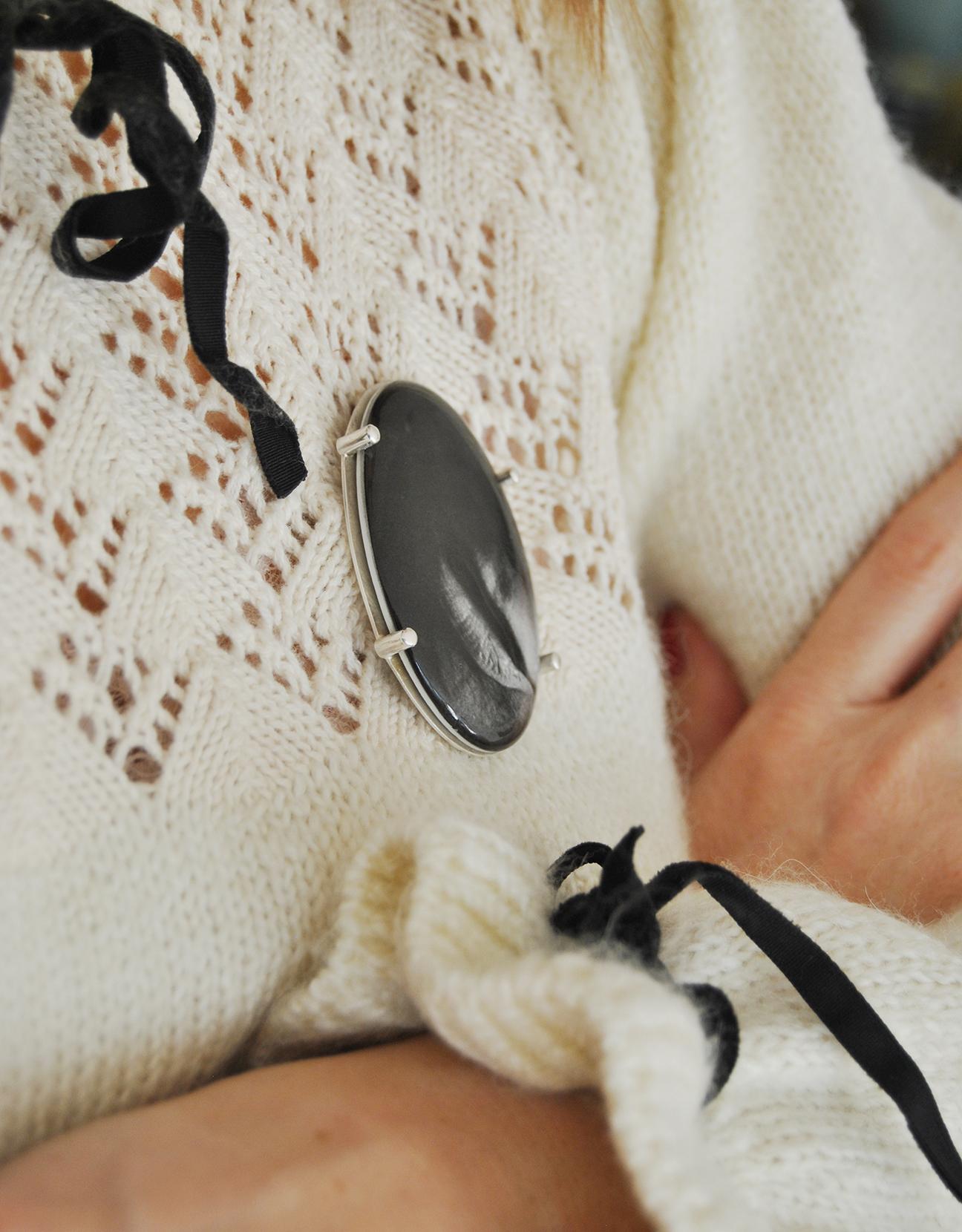 Zainspirowana "Tarczą, która kłamie" Daria Olejniczak stworzyła unikatową broszkę z ceramiki i srebra.