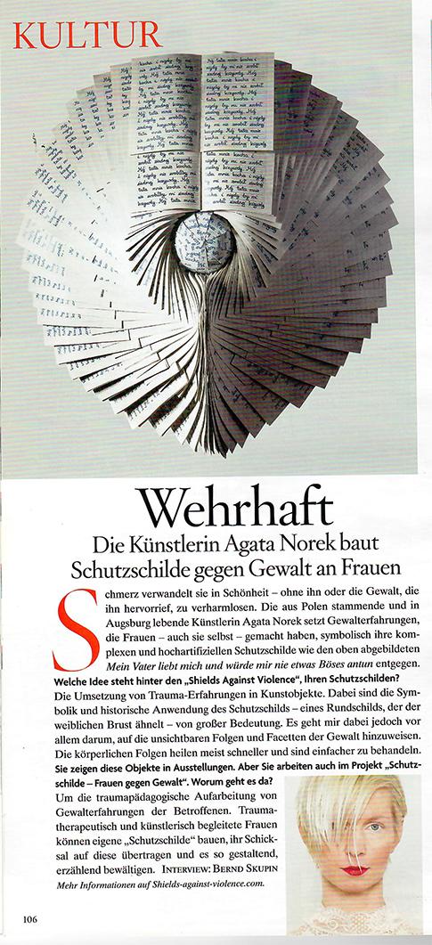 Agata Norek: Projekt jest przełożeniem doświadczenia traumatycznego na dzieła sztuki. Ogromne znaczenie ma w tym kontekście wykorzystanie symboliki tarczy – okrągłej i wypukłej,